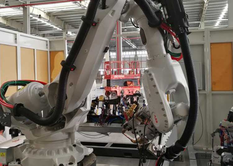 This involves installing a robot mobile carriage onto an existing slide rail system, integrated with a drag chain system to protect power cables, air lines, and signal cables.