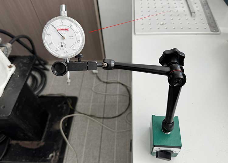 Uses a dial indicator to measure the robot's repeatability positioning accuracy, identifying potential abnormalities in the robot body.