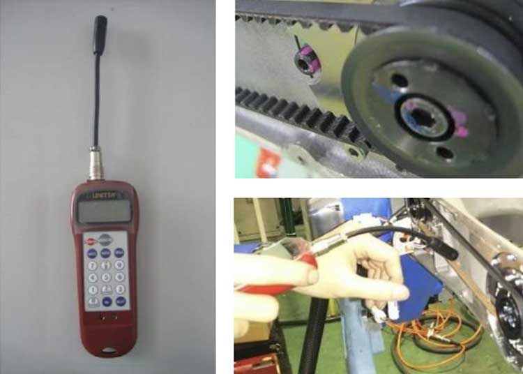 This test uses an ultrasonic belt tension meter to measure the tension on axes utilizing belt drives within the robot, identifying any anomalies.